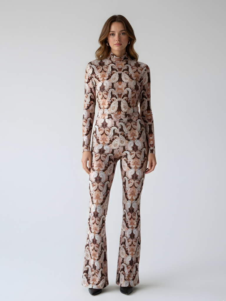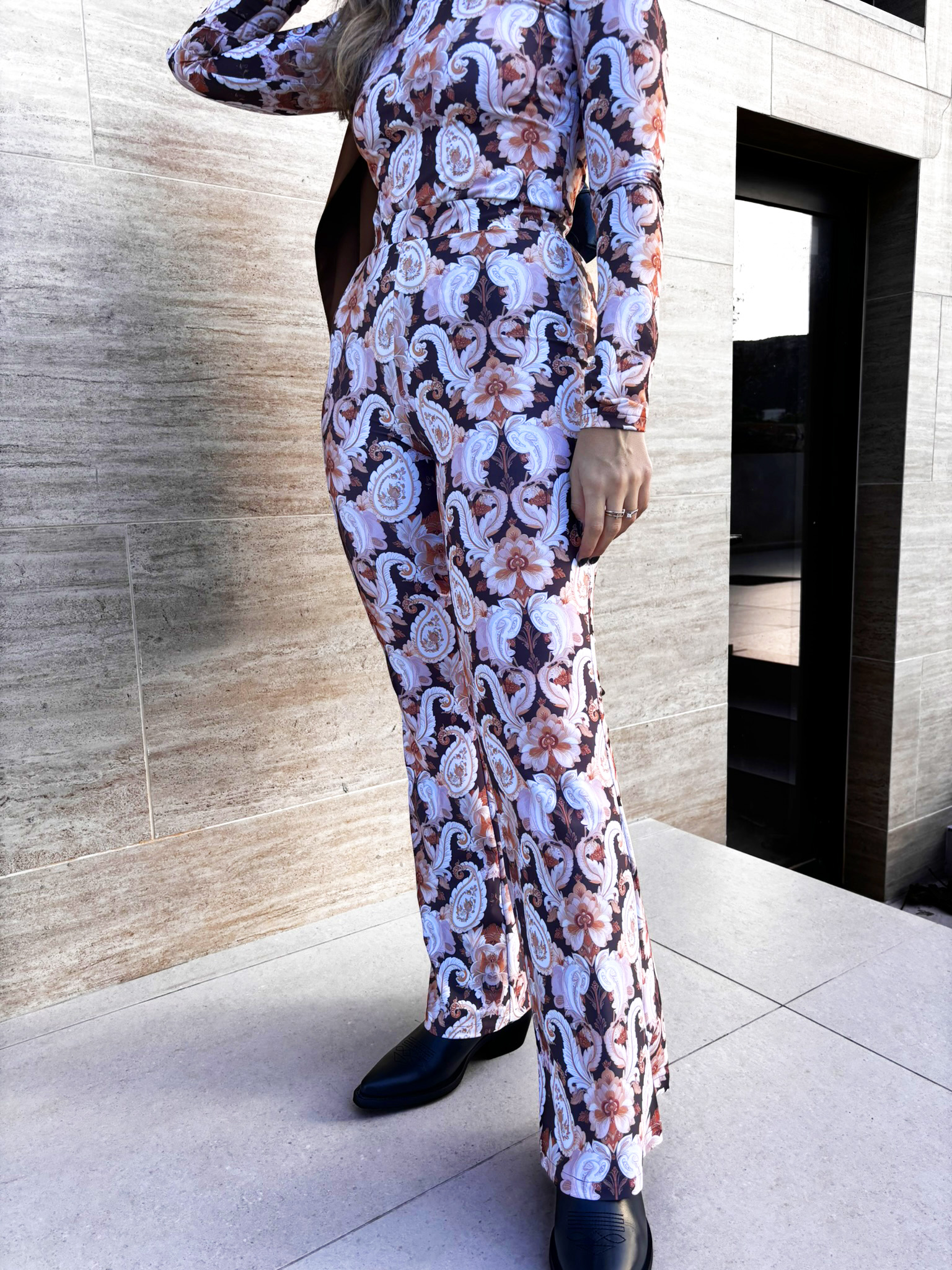☽ Παντελόνι με μπεζ–καφέ αποχρώσεις και εντυπωσιακά λαχούρια, που αποπνέει έναν διακριτικό μυστικισμό χάρη στο μοναδικό του design. Κατασκευασμένο από lycra υψηλής ποιότητας, αγκαλιάζει το σώμα με άνεση και προσφέρει άψογη εφαρμογή. Συνδυάζεται ιδανικά με μπεζ, λευκές και καφέ αποχρώσεις, δημιουργώντας ένα ξεχωριστό στυλ που τραβάει τα βλέμματα.