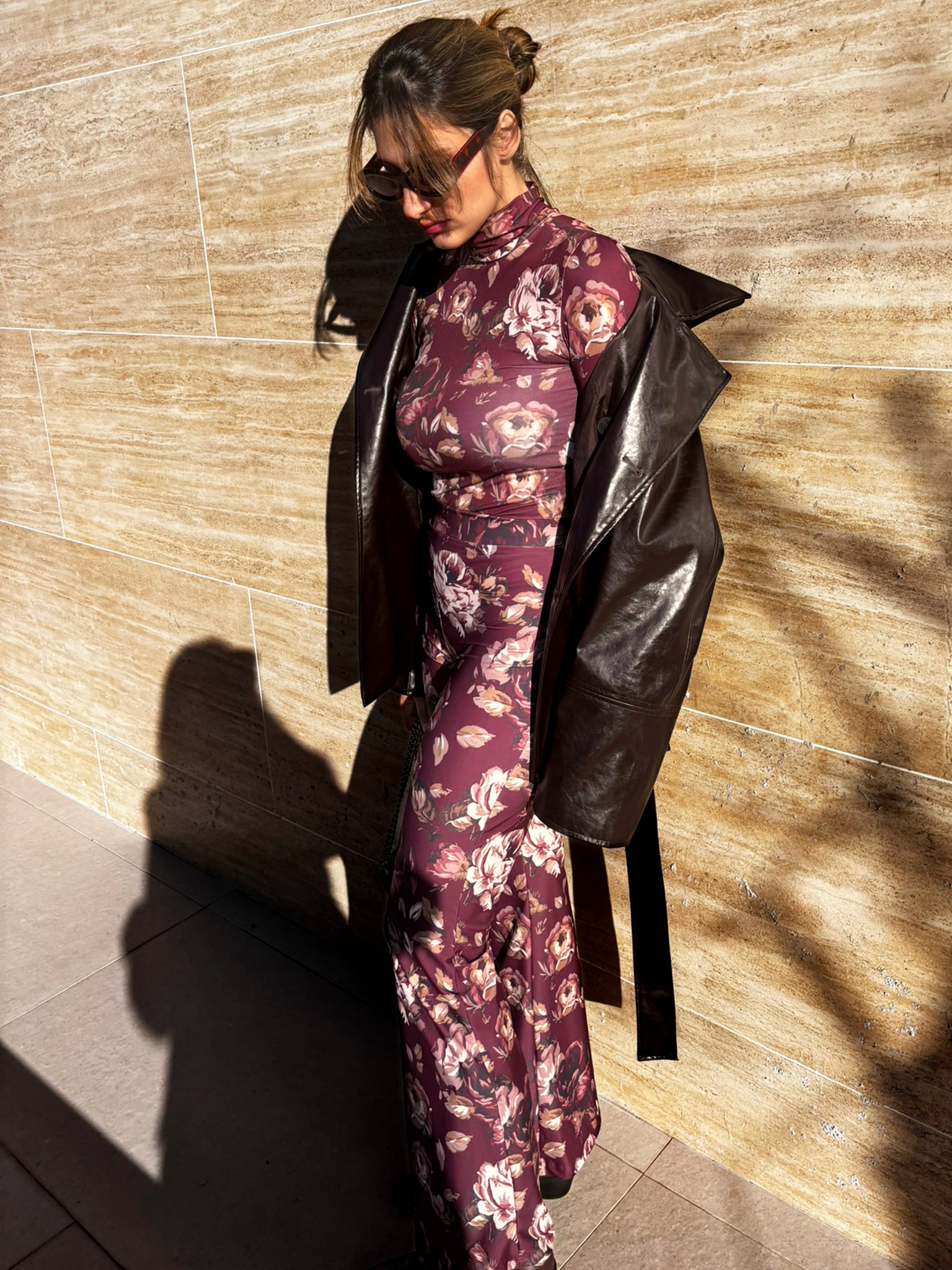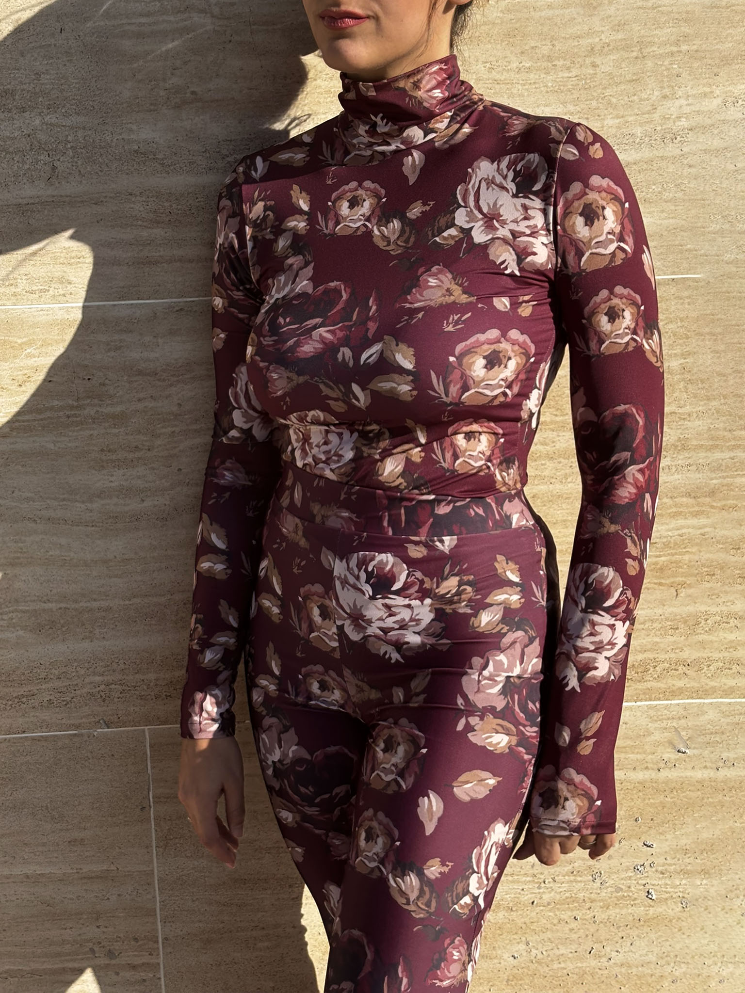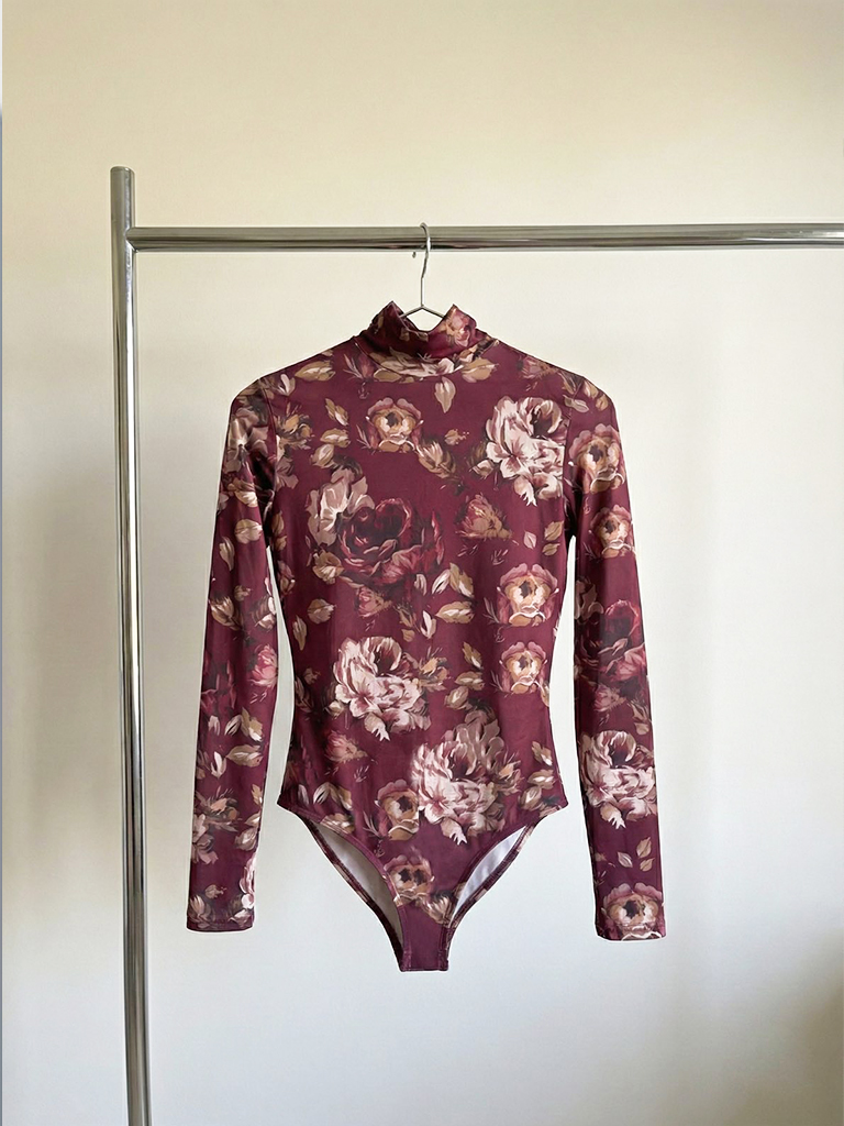 ☽ Κορμάκι βουργουνδί με τριαντάφυλλα, κατασκευασμένο από lycra υψηλής ποιότητας που αγκαλιάζει το σώμα και προσφέρει άνεση και ελαστικότητα. Με άριστη εφαρμογή και μαλακή υφή, αναδεικνύει τη σιλουέτα, ενώ το βαθύ βουργουνδί χρώμα και το μοναδικό μοτίβο με τριαντάφυλλα το κάνουν να ξεχωρίζει σε κάθε εμφάνιση.