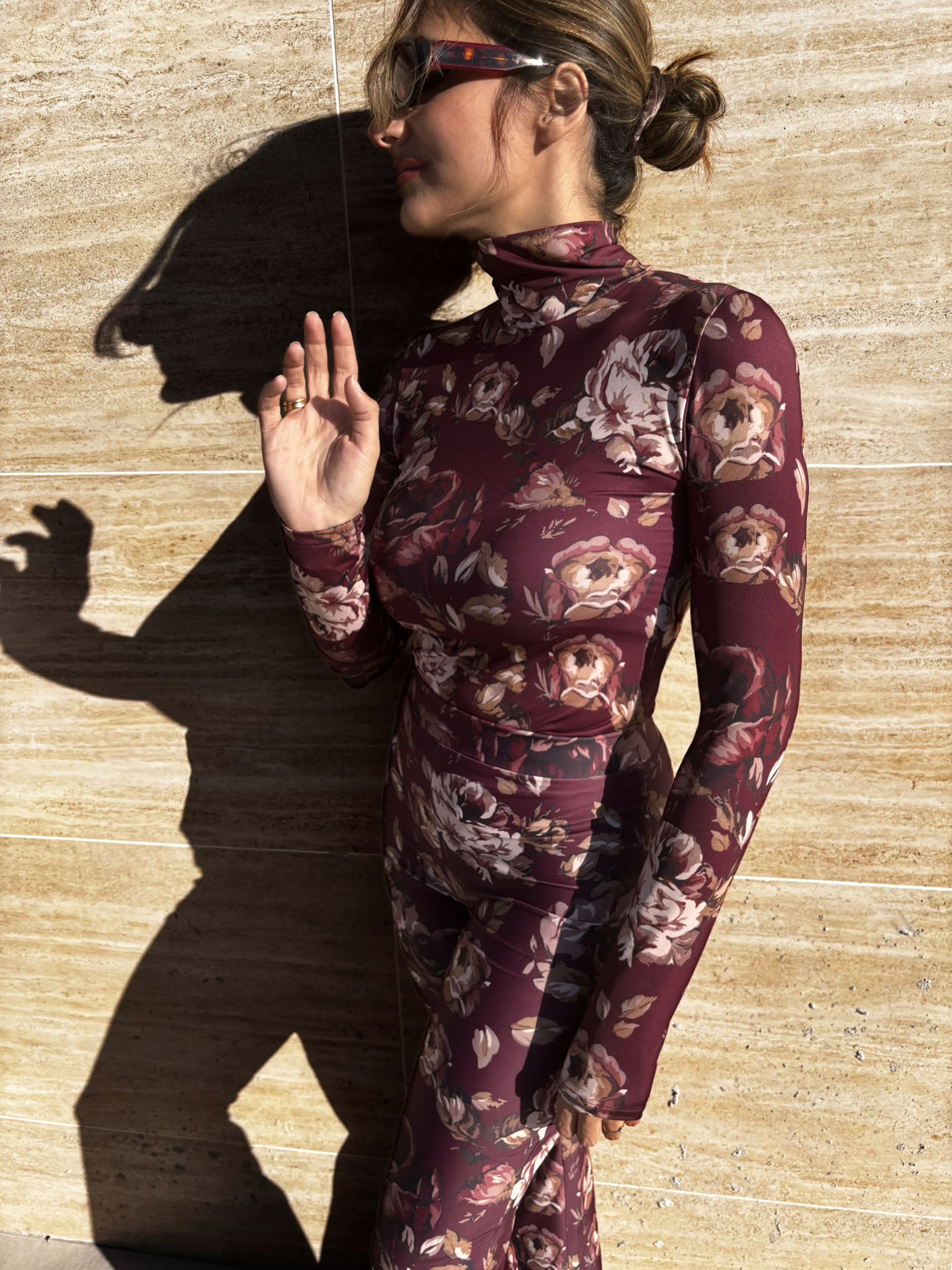 ☽ Κορμάκι βουργουνδί με τριαντάφυλλα.
