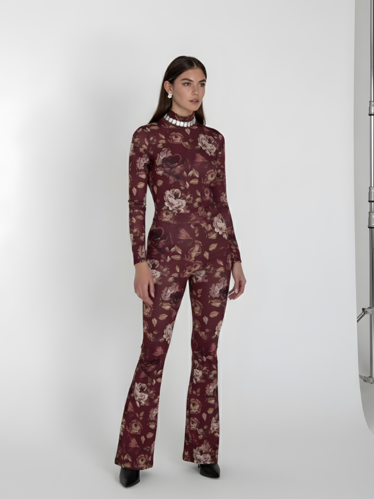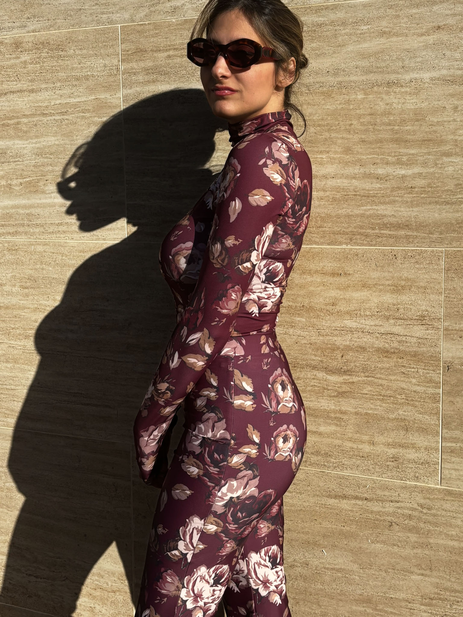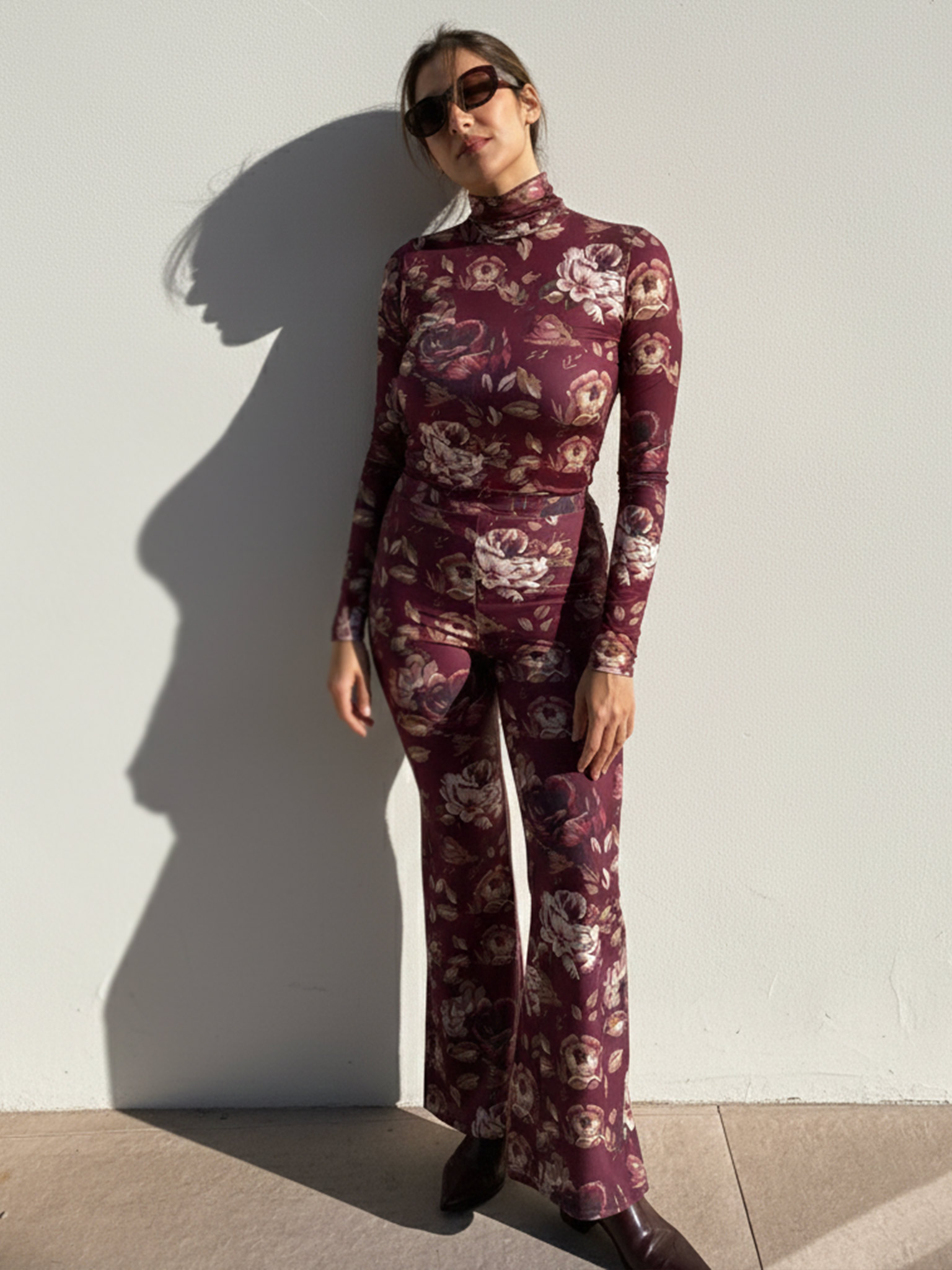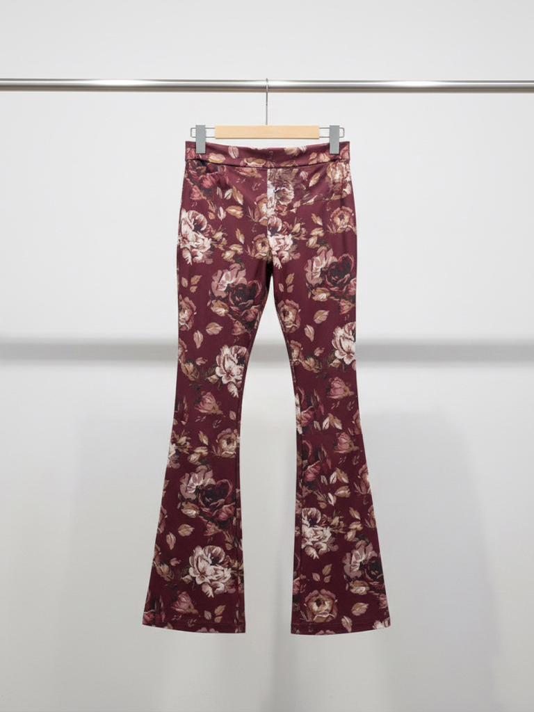 ☽ Παντελόνι βουργουνδί με τριαντάφυλλα, κατασκευασμένο από lycra υψηλής ποιότητας που αγκαλιάζει το σώμα και προσφέρει άνεση και ελαστικότητα. Διαθέτει λάστιχο στη μέση για σταθερή εφαρμογή, ενώ το βαθύ βουργουνδί χρώμα και το μοναδικό μοτίβο με τριαντάφυλλα το κάνουν να ξεχωρίζει σε κάθε εμφάνιση.