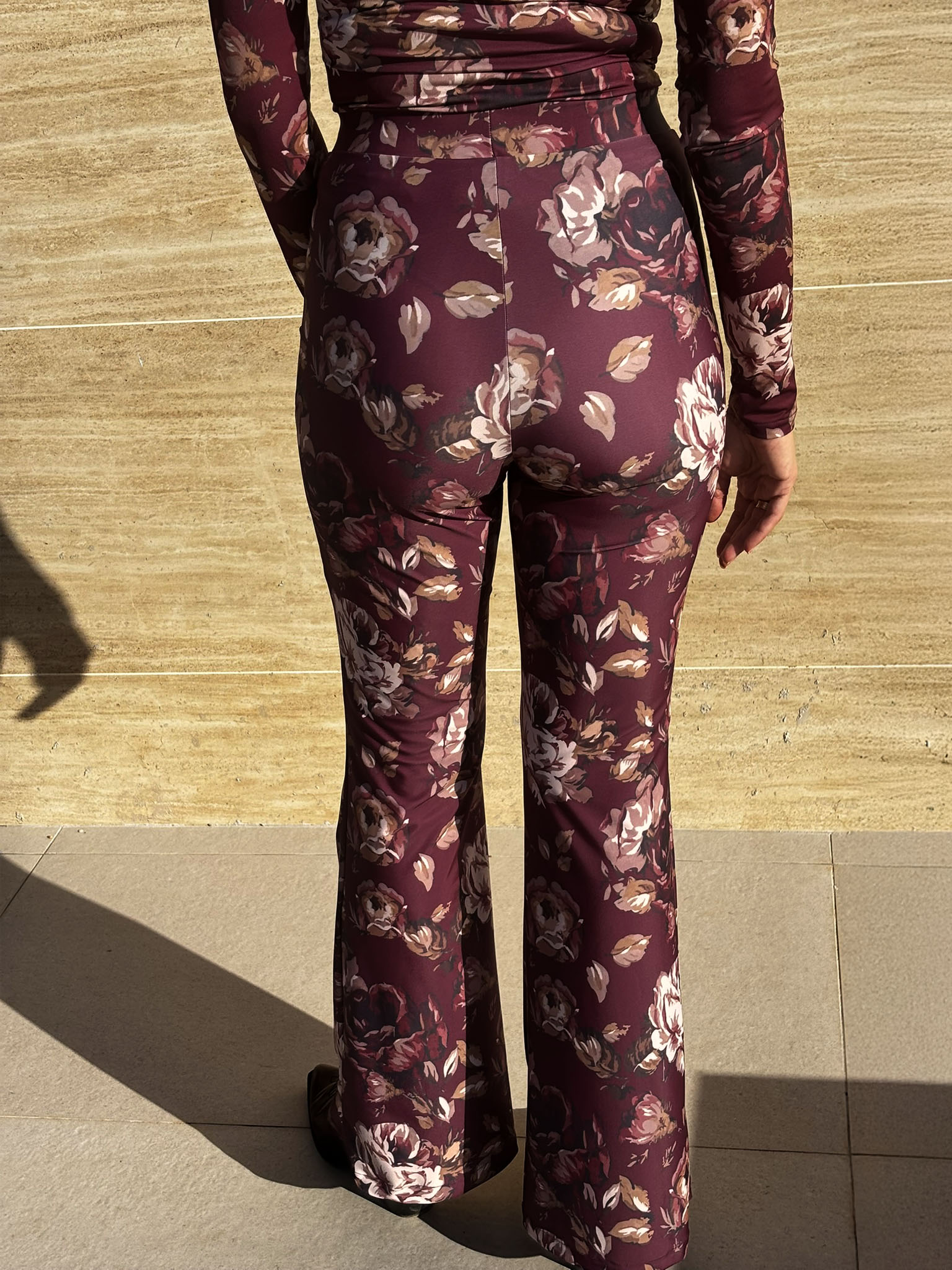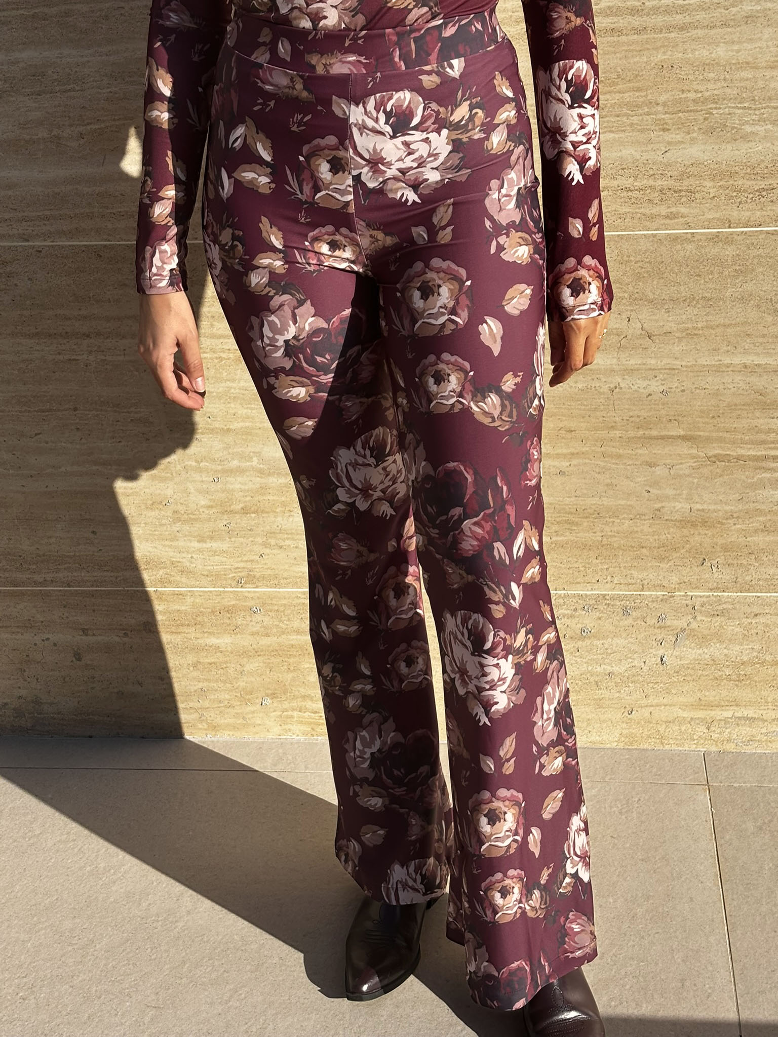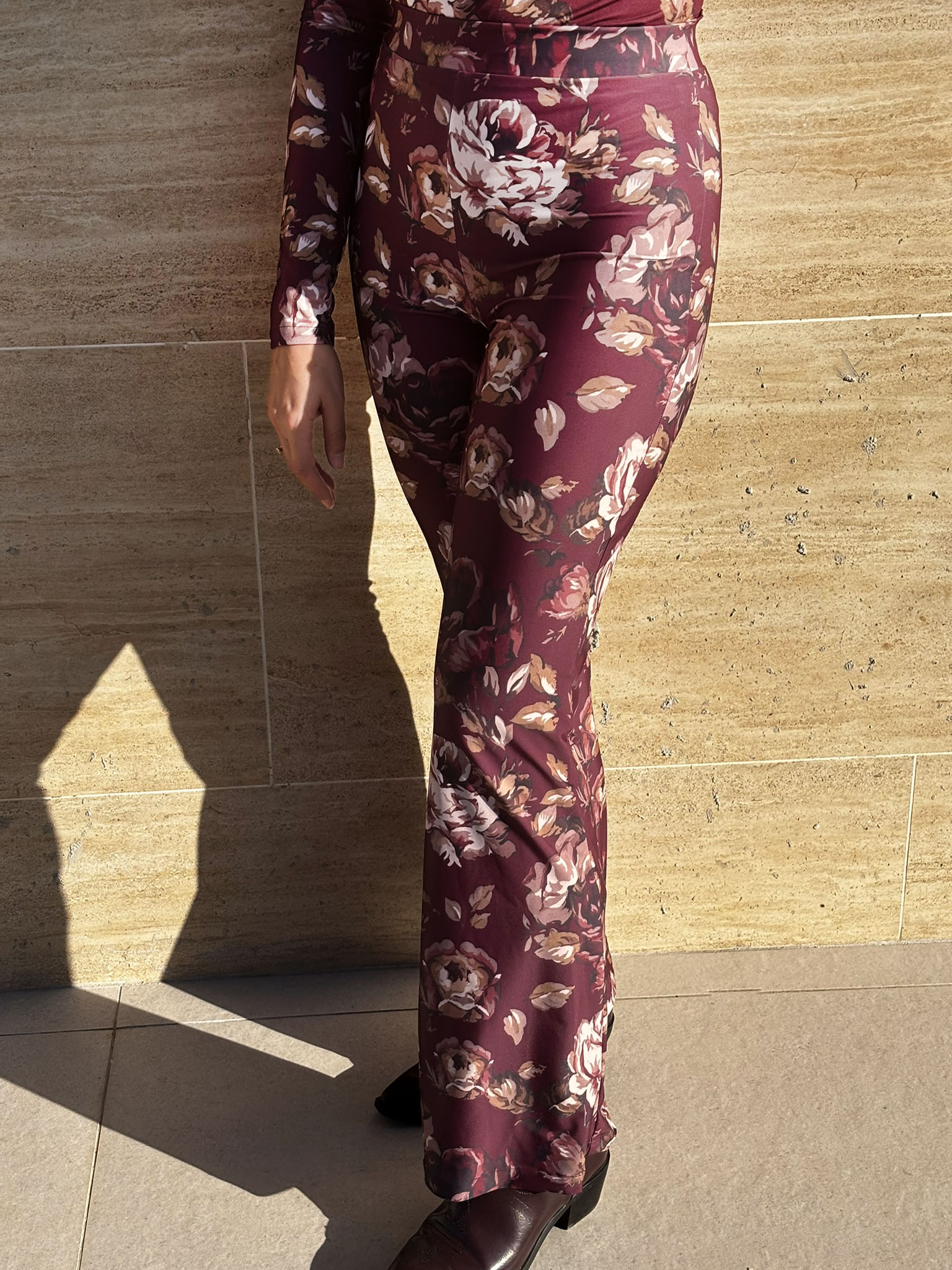 ☽ Παντελόνι βουργουνδί με τριαντάφυλλα.